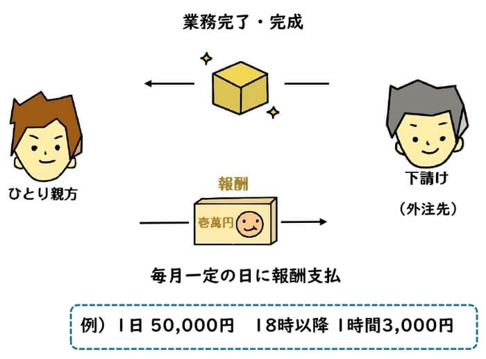 以下、ひとり親方が外注に仕事を依頼するパターンを想定しています。