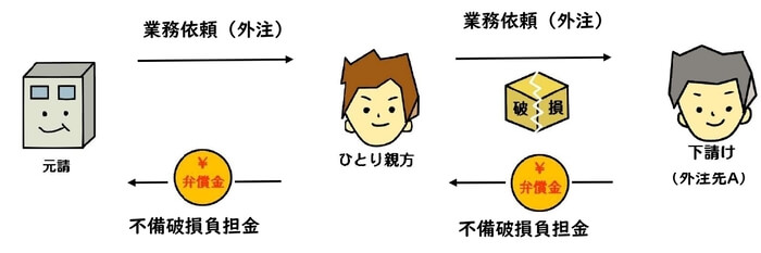 外注先に遅延や破損があり、親方が元請先から金銭負担を要求された場合、遅延・破損を発生させた外注先が金銭負担を行う。