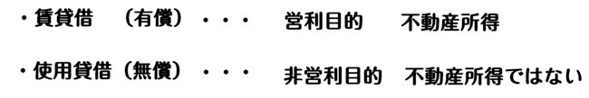 よって、不動産の無償貸付(使用貸借)の場合、そもそもが不動産所得に該当しません。